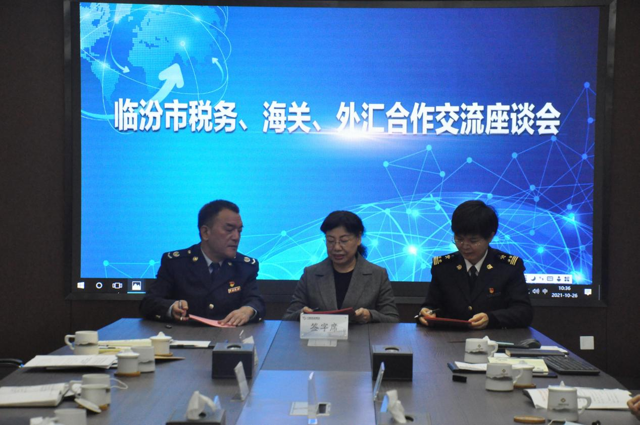 圖7 會上,臨汾市稅務、海關、外匯三家共同簽署《合作備忘錄》