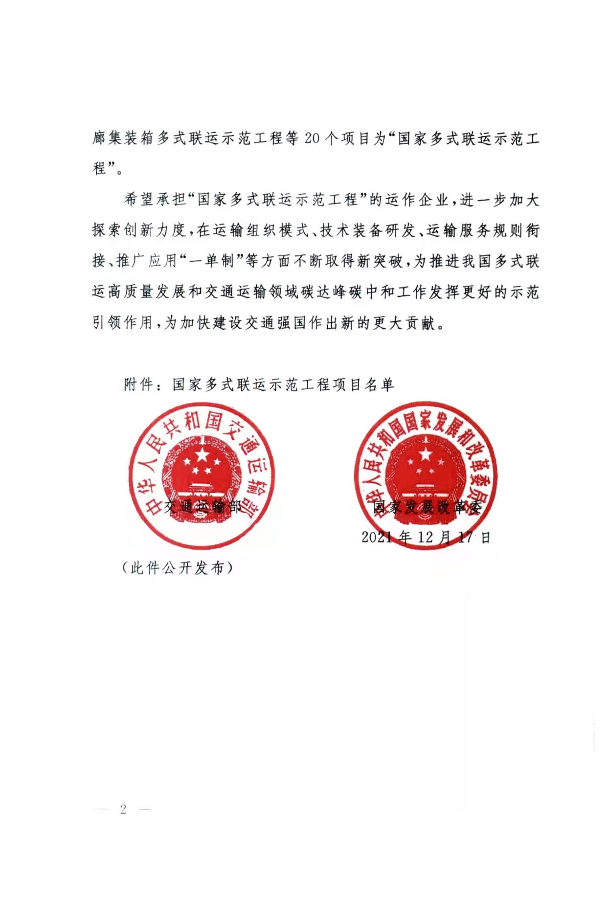 圖1 交通運輸部國家發改委關于命名國家多式聯運示范工程的通知