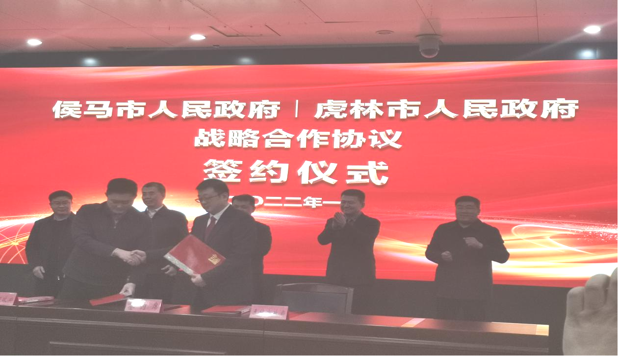 圖3 2022年1月18日,侯馬市人民政府與虎林市人民政府共同簽訂戰(zhàn)略合作協(xié)議,締結(jié)友好城市